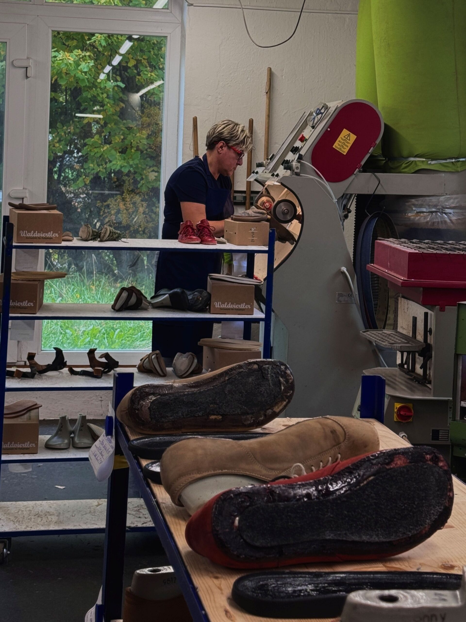 Anschließend ging es weiter zu GEA, einem Unternehmen, das für seine handgefertigten Schuhe, Möbel und Taschen bekannt ist. Bei einer Führung durch die Werkstätten konnten wir den Produktionsprozess hautnah miterleben – vom Zuschnitt des Leders bis zur Fertigstellung eines Waldviertler Schuhs.