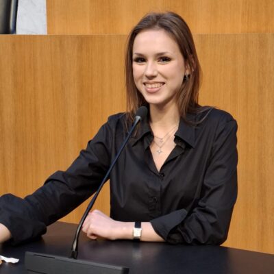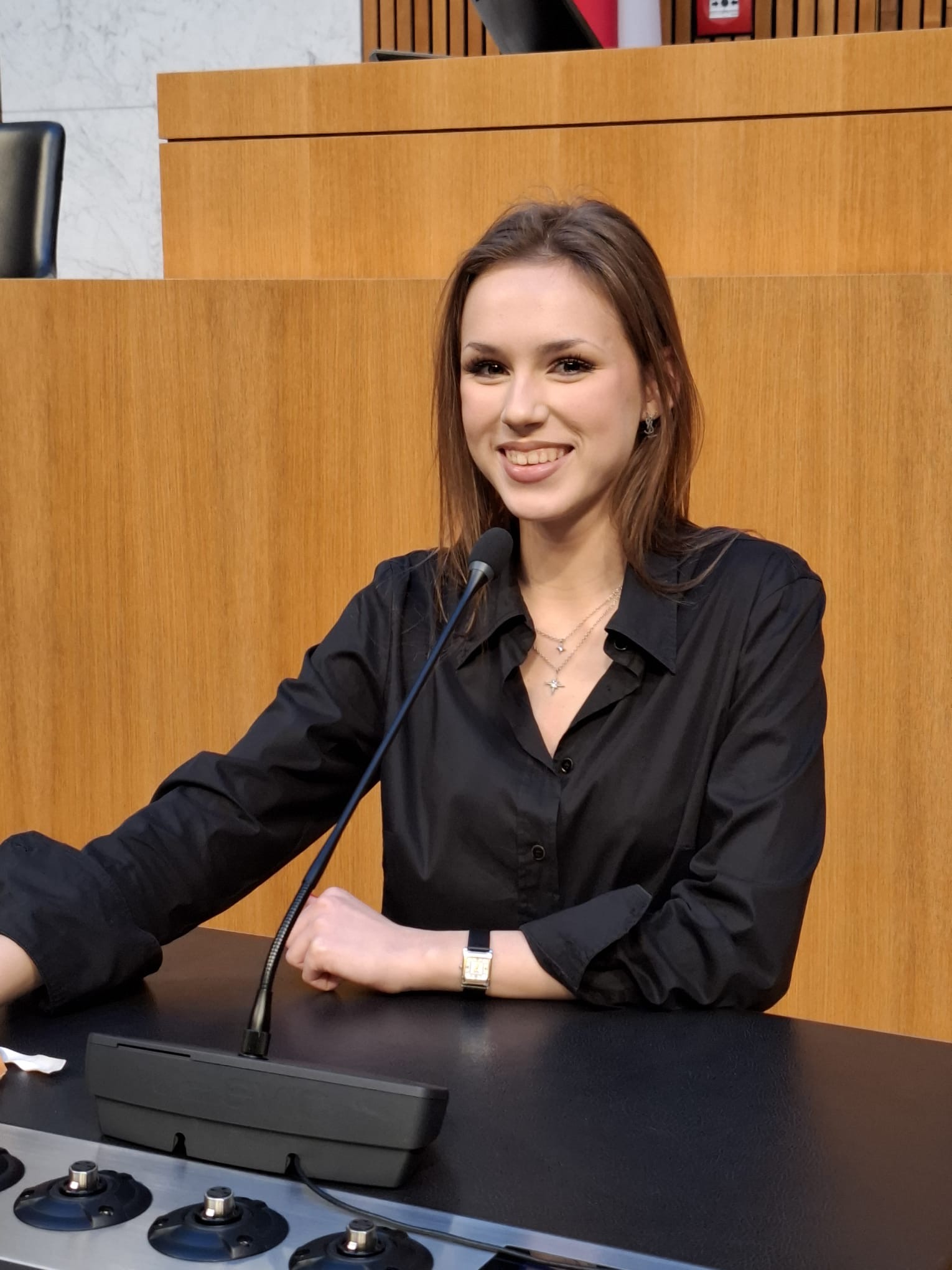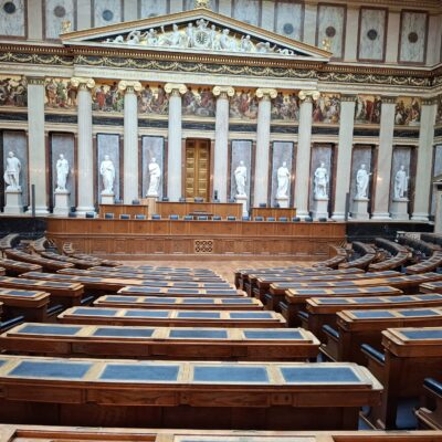Zum Schluss wurde uns der modern und sachlich gestaltete Nationalratssitzungssaal gezeigt, das Herz des österreichischen Parlaments, wo die österreichischen Bundesgesetze beschlossen werden.