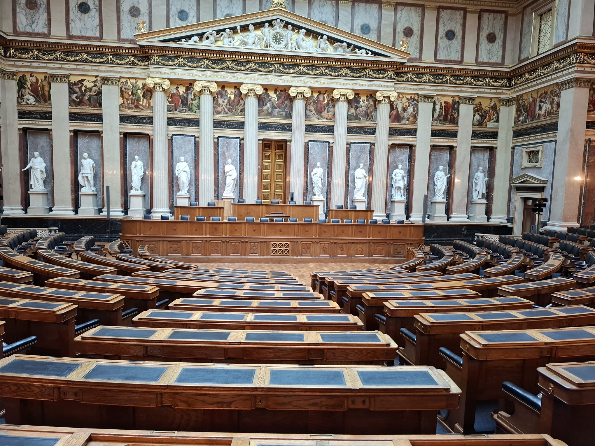 Besonders eindrucksvoll war der prunkvolle historische Bundesversammlungssaal, in welchem früher 512 Abgeordnete der österreichischen Reichshälfte der Monarchie tagten. Heute wird dieser Saal nur selten genutzt, so bei der Angelobung des Bundespräsidenten und bei Festakten.