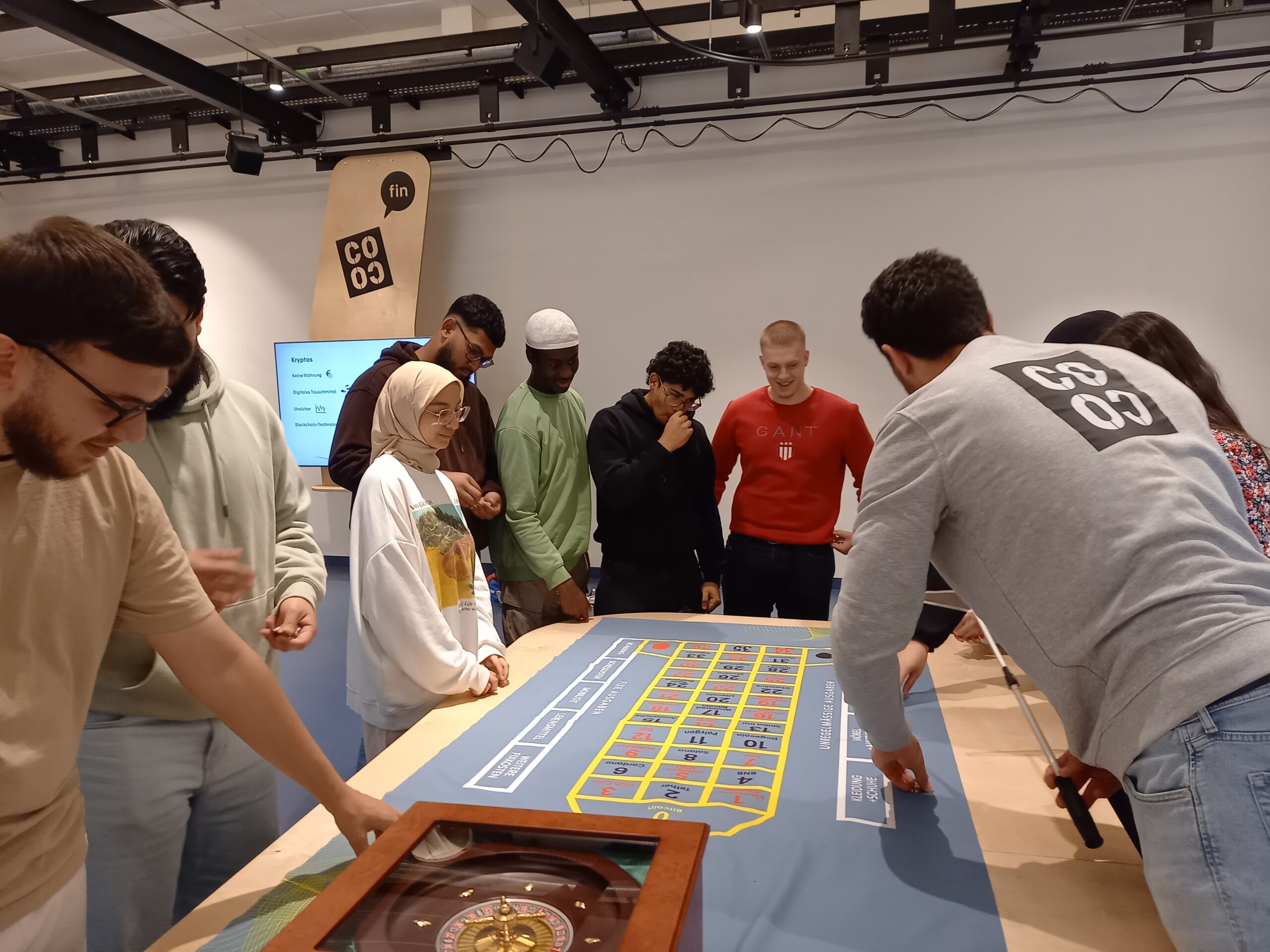 Der Workshop war sehr abwechslungsreich, beispielsweise wurde die Arbeit von Essenszustellern nachgestellt. Die Gefahr von „zocken“ wurde anhand eines Roulette Spiels veranschaulicht.