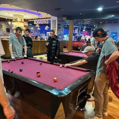Despite the stereotypical English weather, the students and the teachers enjoyed their time on the southern countryside of the British Island. During the week they attended an Oxford Language School in the centre of the city. Afterwards they explored the city and visited some main sightseeing attractions like the Royal Pavilion and Brighton Palace Pier. In the evening everyone enjoyed the atmosphere while walking on the lovely beach or participating in some activities like playing football or pool, and of course, bowling, which was fun.