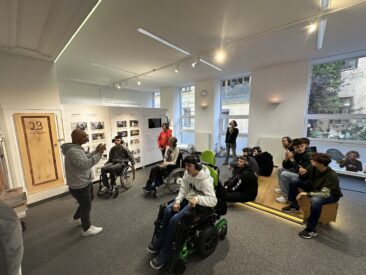Am 16. Oktober 2025 besuchte die 1AO die Erlebnisausstellung Hands Up! Gemeinsam mit unserem gehörlosem Guide konnten die Schüler*innen für circa eine Stunde in die Welt der Gehörlosen eintauchen. Es bot sich dabei die Möglichkeit Alltagstätigkeiten aus Sicht einer gehörlosen Person zu simulieren. Da wir drei gehörlose Schüler*innen im Klassenverband haben, war das Ganze gleich noch interessanter.