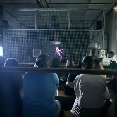 Im Zuge eines Besuchs im Technischen Museum konnten die Schüler*innen der 4AK in einem Workshop Hochspannungen im Kilovolt-Bereich aus nächster Nähe erleben und so zahlreiche Blitz-Phänomene wie den Faradayschen Käfig hautnah beobachten.