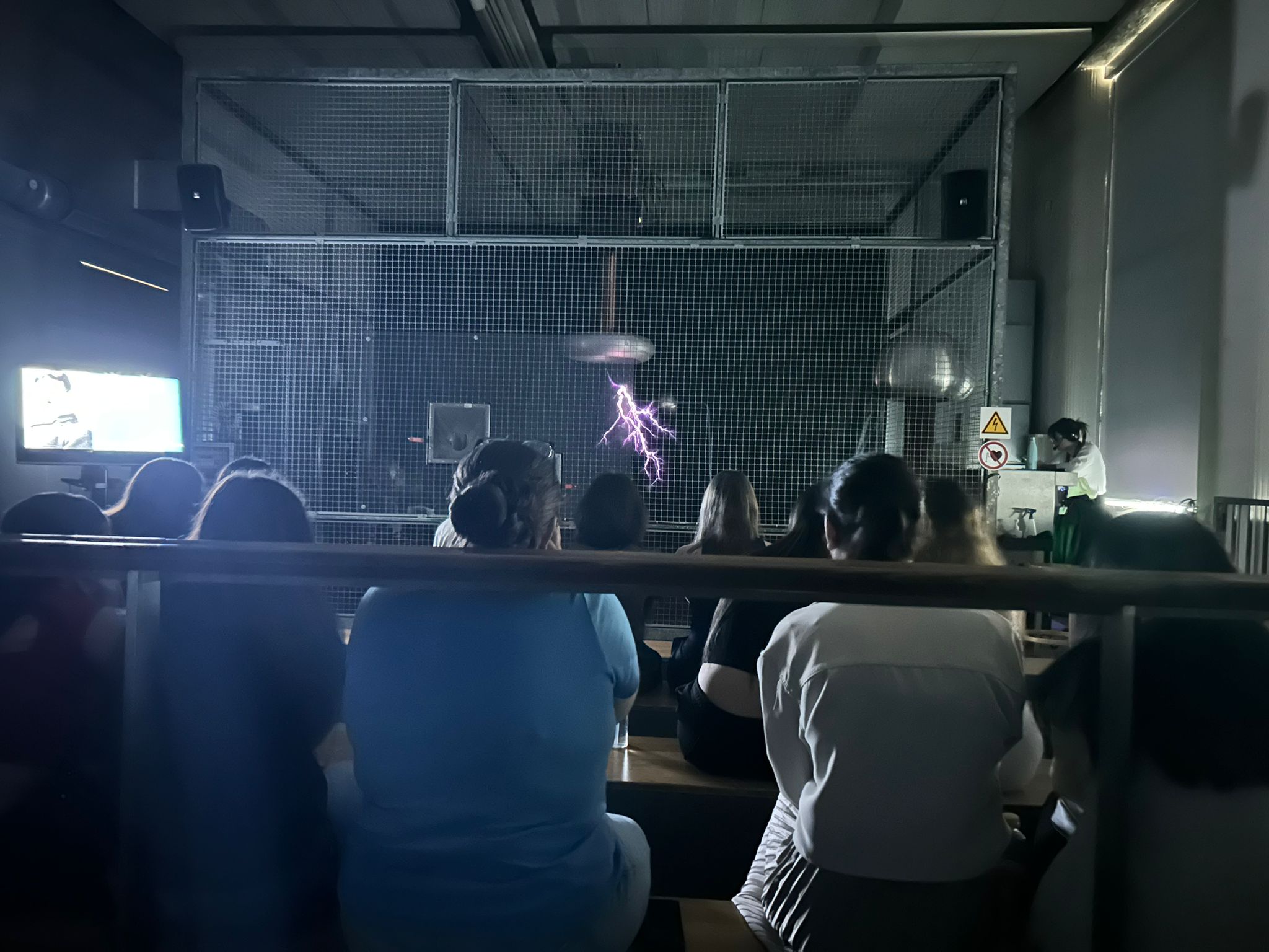 Im Zuge eines Besuchs im Technischen Museum konnten die Schüler*innen der 4AK in einem Workshop Hochspannungen im Kilovolt-Bereich aus nächster Nähe erleben und so zahlreiche Blitz-Phänomene wie den Faradayschen Käfig hautnah beobachten.