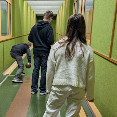 Im Anschluss wurde das Spiel Werwolf gespielt, das für viele Lacher und gute Stimmung sorgte. Nach den Gruppenspielen blieb noch ausreichend Zeit, um sich in lockerer Atmosphäre weiter kennenzulernen. Einige Schülerinnen und Schüler spielten Gesellschaftsspiele wie Uno oder Splash, während andere die Gelegenheit nutzten, um die schuleigene Kegelbahn zu testen.