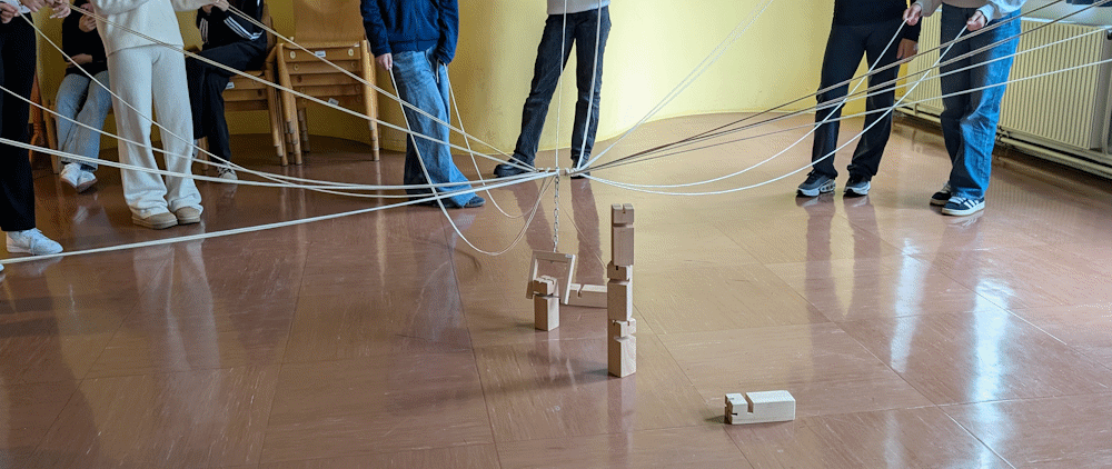 Zu Beginn des Tages traf sich die Klasse im Klassenzimmer, bevor es gemeinsam ins Schulrestaurant ging. Dort wurden alle herzlich empfangen und konnten sich bei einem reichhaltigen Frühstück stärken. Nach dieser gemütlichen Runde startete das Programm in der Lernlandschaft mit einem Teamspiel, bei dem die Klasse gemeinsam versuchte, einen möglichst hohen Turm zu bauen.