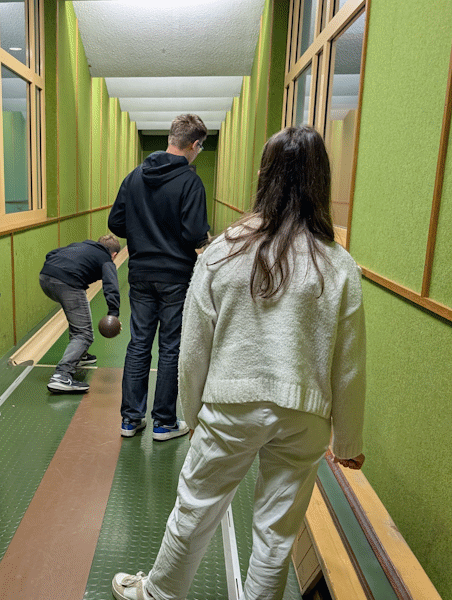 Im Anschluss wurde das Spiel Werwolf gespielt, das für viele Lacher und gute Stimmung sorgte. Nach den Gruppenspielen blieb noch ausreichend Zeit, um sich in lockerer Atmosphäre weiter kennenzulernen. Einige Schülerinnen und Schüler spielten Gesellschaftsspiele wie Uno oder Splash, während andere die Gelegenheit nutzten, um die schuleigene Kegelbahn zu testen.