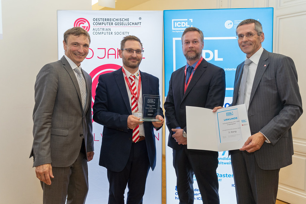 Im Rahmen der OCG Impulse 2025 wurden am Donnerstag, 16. Oktober, die erfolgreichsten ICDL Schulen von Bildungsminister Christoph Wiederkehr und OCG-Präsident Wilfried Seyruck in den Räumlichkeiten der OCG in Wien ausgezeichnet. „Unsere Gesellschaft entwickelt sich immer weiter und das immer schneller. Digitales Wissen ist daher heute neben Lesen, Schreiben und Rechnen die vierte unverzichtbare Grundkompetenz. Sie muss von allen Schüler*innen erlernt werden, um international wettbewerbsfähig zu bleiben„, betonte Bildungsminister Christoph Wiederkehr und bedankte sich bei den Lehrkräfte, den Direktor*innen, der OCG und allen, die den ICDL vorantreiben. Der ICDL (Computerführerschein) wird am Schulzentrum HTL HAK Ungargasse angeboten. Das Schulzentrum HTL HAK Ungargasse war dabei österreichweit das erfolgreichste ICDL Schul Test Center, Rang 2 in der Kategorie Technische Schulen.