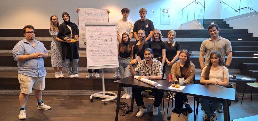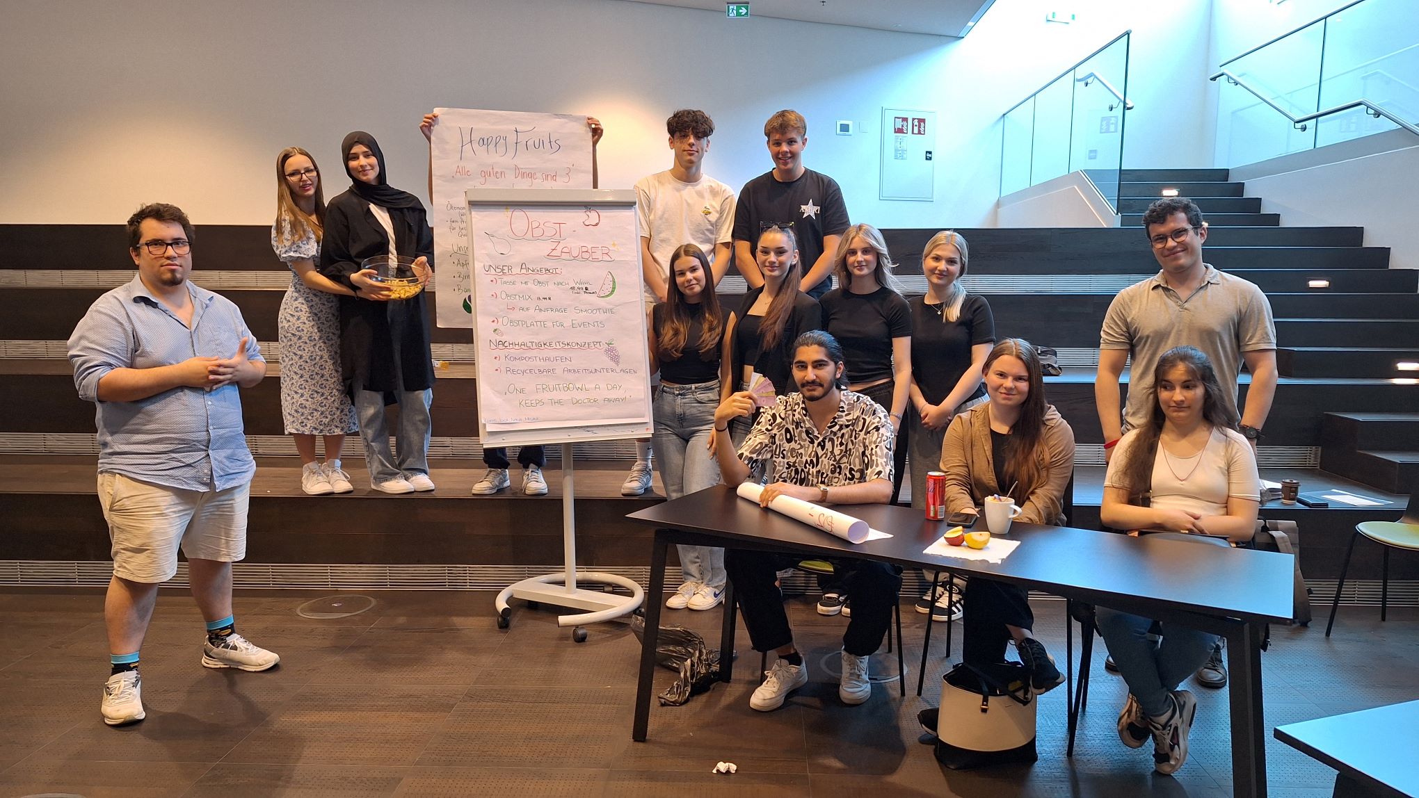 Grundsätzlich geht es bei diesem Workshop darum, Projektideen zu finden und durch die Tools des Projektmanagement zu strukturieren. Zu Beginn des praktischen Teils bekamen die Schüler:innen den Auftrag, ein fiktives Unternehmen zu gründen, welches für ein Festival in Krems Obstsalate produziert. Die Schüler:innen mussten nun Obst einkaufen, den Obstsalat produzieren und dann dem Projektauftraggeber in einem Pitch (kurze Vorstellung der Geschäftsidee) verkaufen. Im Anschluss stellten die Workshop-Leiter:innen, die die Rolle der Projektauftragnehmer hatten, sehr kritische Fragen zur Preiskalkulation, zur Nachhaltigkeit des Produktes und zur Unternehmensorganisation. Obwohl der Workshop durchaus fordernd war, hat er auch viel sehr viel Spaß gemacht!