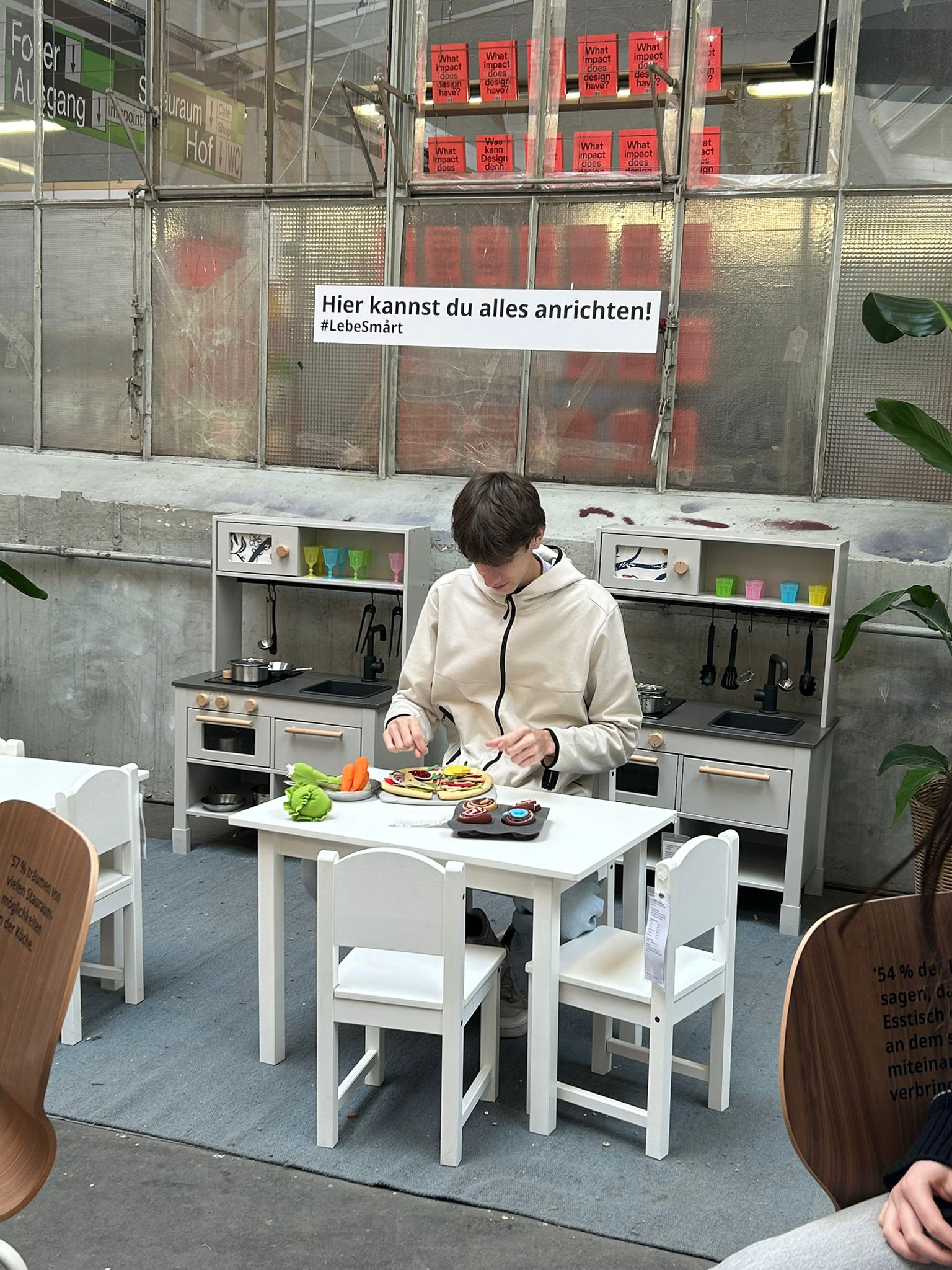 Über die Beschäftigung mit der Gestaltung von Produkten hinaus steht die Frage, welche Rolle die Arbeit von Designer*innen für das Zusammenleben in der Stadt bzw. weltweit spielt, im Zentrum. Die Schüler*innen hatten während der Führung Zeit, sich mit Hilfe gezielter Fragestellungen mit den Designs kritisch auseinanderzusetzen und die Intentionen der Künstler*innen zu interpretieren.